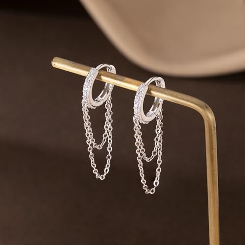 Reffeer 925 Sterling Silver CZ Chain Hoop Earrings Dangle Chain for Women Teens Dangle Earrings Tassel Hoop Earrings 4