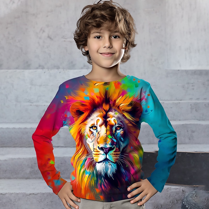 More information about Boys 3D Graphic Animal Tiger T shirt Tee Long Sleeve 3D Print Summer Spring Fall Sports Fashion Streetwear Kids 3-12 Years Outdoor Casual Daily Regular Fit