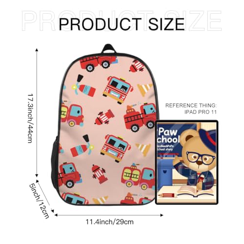 Firetruck Backpack 17 inch Cartoon Firetruck Backpack Large Capacity