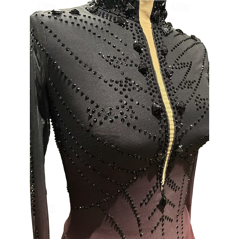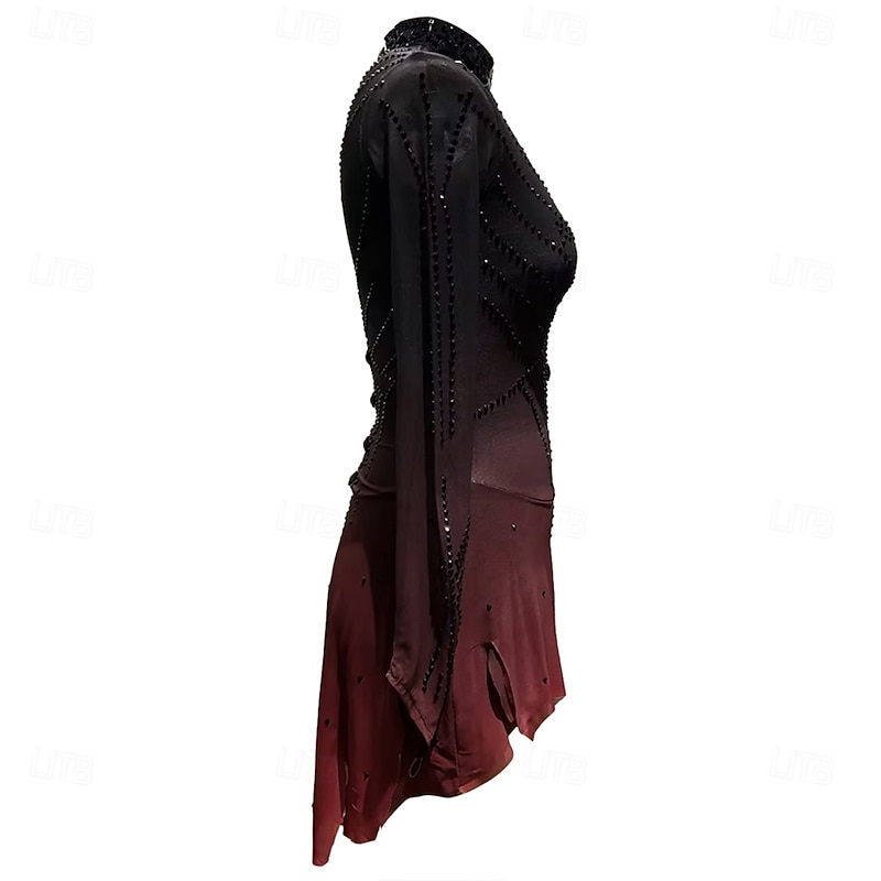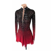 More information about Figure Skating Dress Girls' Ice Skating Dress Black Red Halo Dyeing High Elasticity Professional Competition Skating Wear Thermal Warm Crystal / Rhinestone Long Sleeve Ice Skating Figure Skating