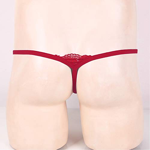 AGJGFM Mens Lace T-Back Briefs Bulge Pouch G-String Lingerie Bikini Underwear Thong Underpants Red 5
