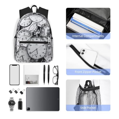 BREAUX Clock Art Print Lightweight And Comfortable Duffel Bag, Casual Daypack, Multipurpose Backpack 7