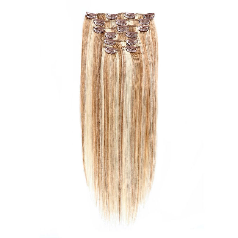 Clip In Hair Extensions Remy Human Hair Clip On Hair Extensions 7 Pcs 100 g Pack Straight Blonde 14-24 inch Hair Extensions 27