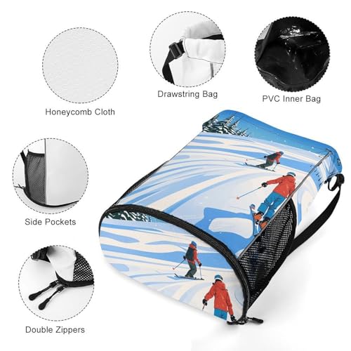 • Waterproof Fabric: This Winter Sports Ski Theme Gym Backpack for Women Is Made of Water-Resistant Honeycomb Cloth That Can Withstand Daily Wear and Tear, Protecting Your Belongings from Rain and Splashes. Designed for Your Convenience, Winter Sports Ski Theme Gym Bookbag Features Quick-Drying and Lightweight Construction, Making It the Perfect Choice for Your Next Travel Adventure