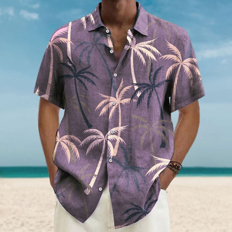 More information about Men's Coconut Tree Tropical Plants Shirt Summer Hawaiian Shirt Aloha Shirt Short Sleeves Shirt Turndown Fashion Streetwear Designer Outdoor Street Casual Blue Purple Brown S M L