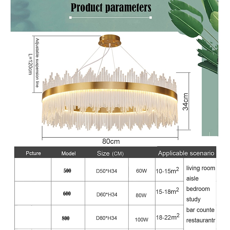 More information about LED Pendant Light 50 / 60 / 80cm Light Luxury European K9 High end Crystal Chandelier Dimming Ceiling Lamp Suitable for Bedroom Dining Room Study AC110V AC220V