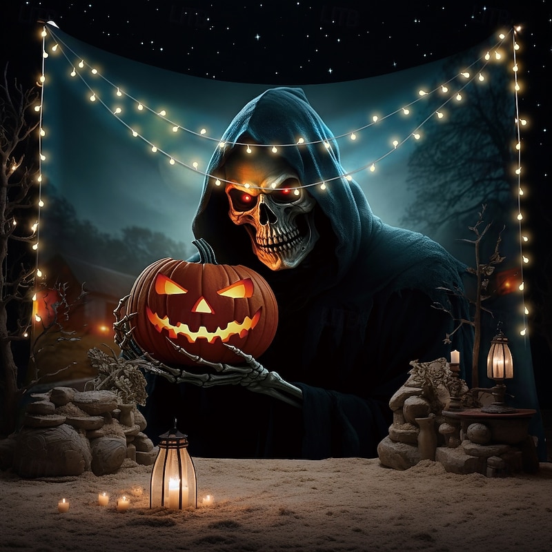 $17.49 - Halloween Tapestry Banners Wall Hangings Grim Reaper Pumpkin Dark Punk Gothic Style Party Dorm Shooting Backgrounds Home Decor 2025. Shop for cheap Halloween Wall Tapestries online? Buy at lightinthebox.com on sale today!