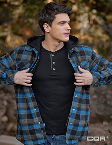CQR Men's Quilted Lined Flannel Hooded Shirt Jacket, Soft Warm Long Sleeve Outdoor Cotton Plaid Shirt Jackets 7