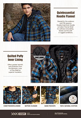 HOT ! CQR Men's Quilted Lined Flannel Hooded Shirt Jacket, Soft Warm Long Sleeve Outdoor Cotton Plaid Shirt Jackets