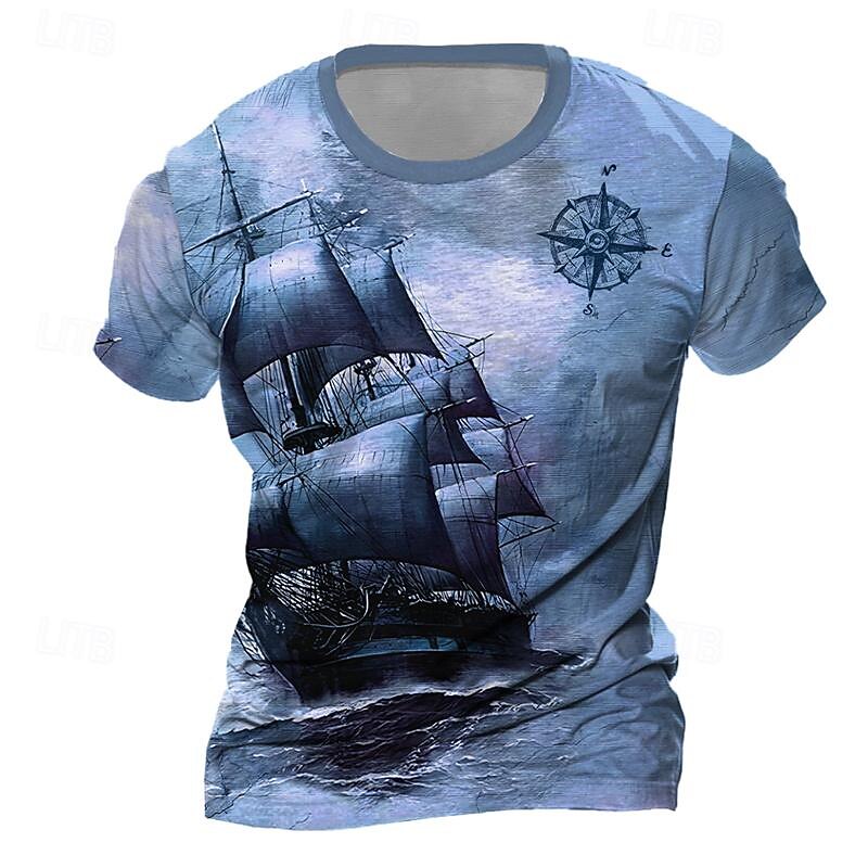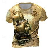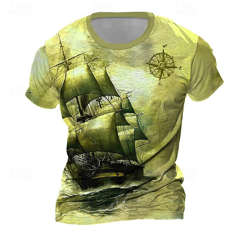 More information about Men's Graphic Compass Sailboat T Shirt Short Sleeve T shirt 3D Print Crew Neck Shirt Daily Designer Retro Vintage Sports Outdoor Holiday Going out Yellow Blue Green Spring & Summer Clothing Apparel S