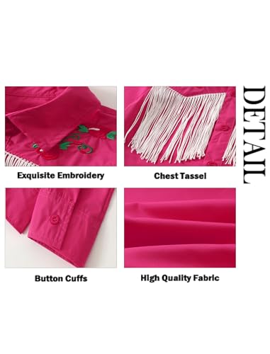 More information about Girls Western Cowboy Fringe Shirt Long Sleeve Floral Embroidered Cute Collared Retro Casual Blouses Shirts