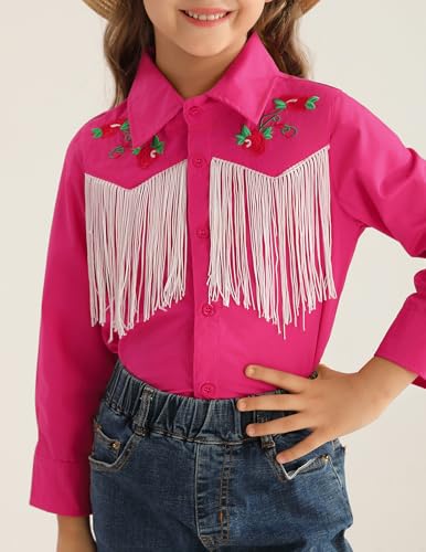 Girls Western Cowboy Fringe Shirt Long Sleeve Floral Embroidered Cute Collared Retro Casual Blouses Shirts 6