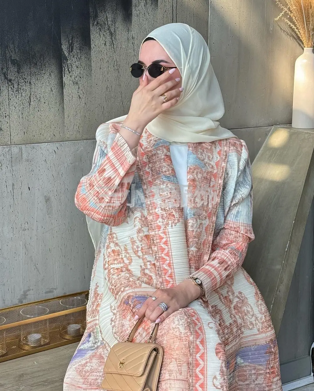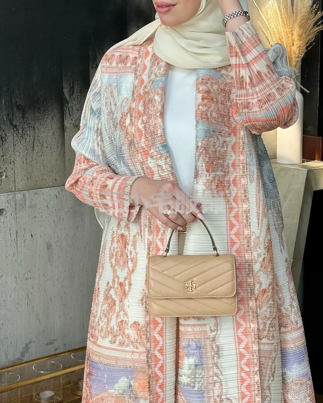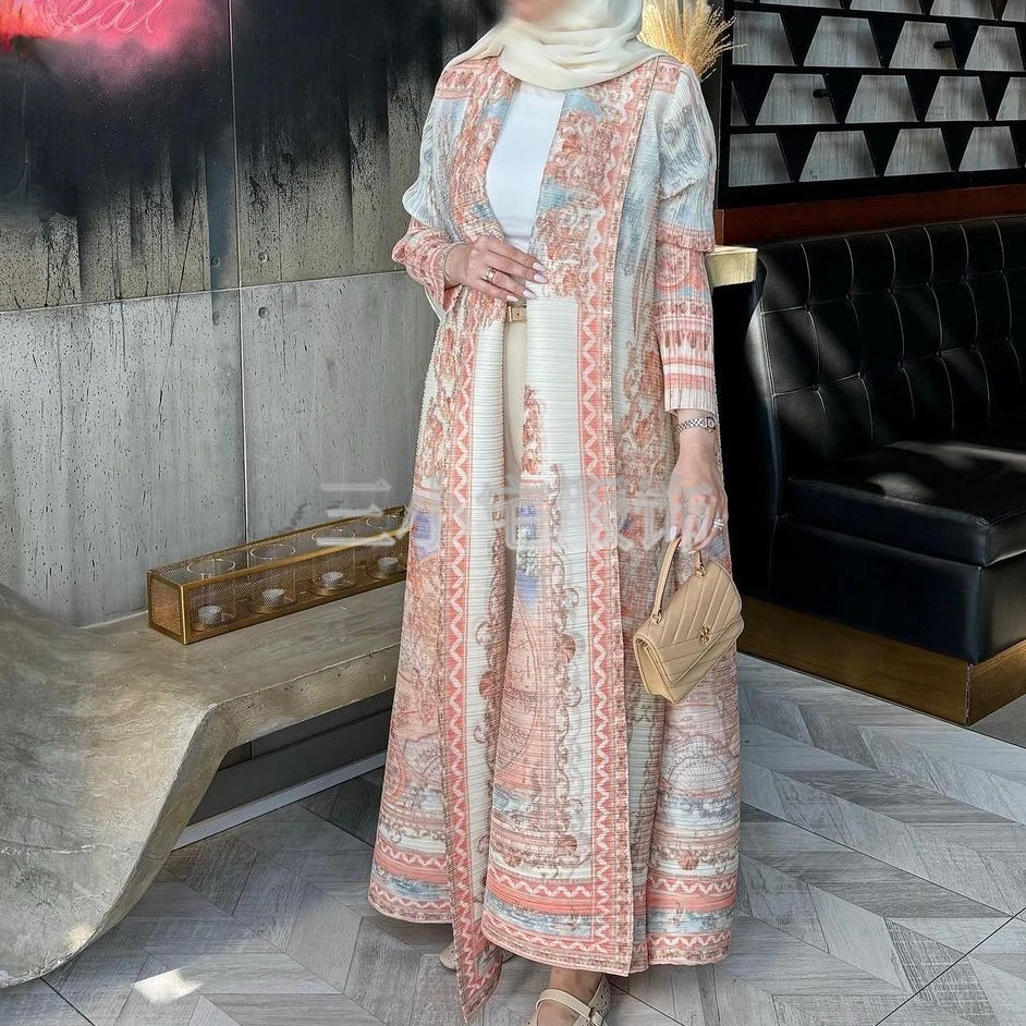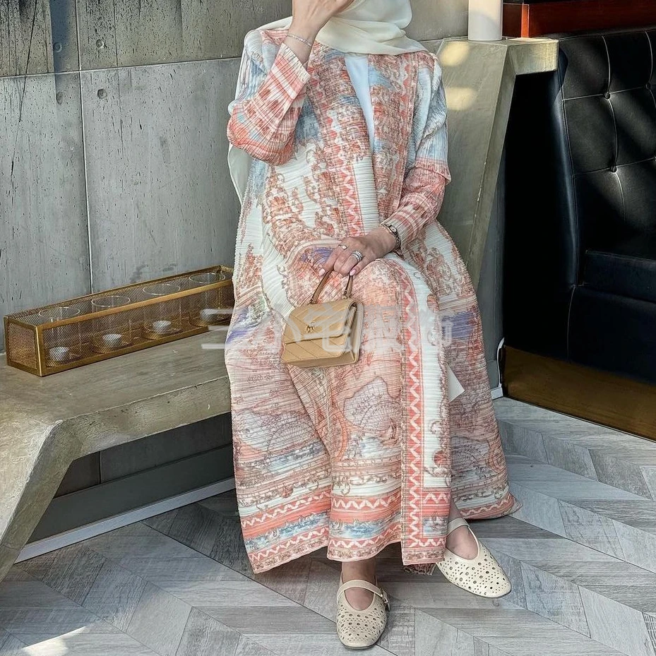 YUDX Pleated Women's Long Abayas Middle East Dubai Style Loose Plus Size Robe Cardigan Tie Design Dress 2024 Fall New