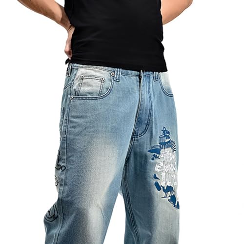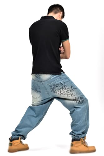 XYGJZ Men's Baggy Jeans Hip-hop Letter Printed Denim Pants Loose Fit Dance Skater Skateboard Pants 7