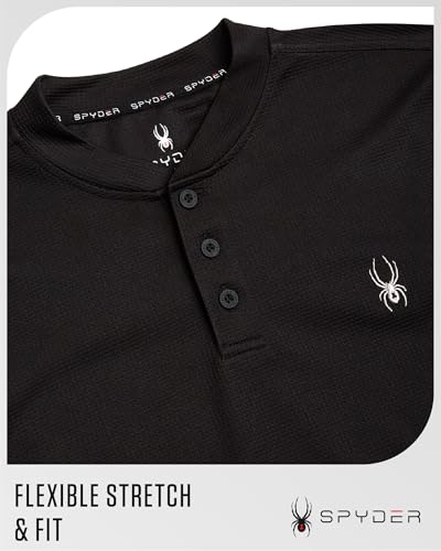 HOT ! Spyder Mens Thermal Long Sleeve Shirt - Moisture Wicking Henley Shirts for Men with UP 30 Dri Fit Long Sleeve Shirts for Men