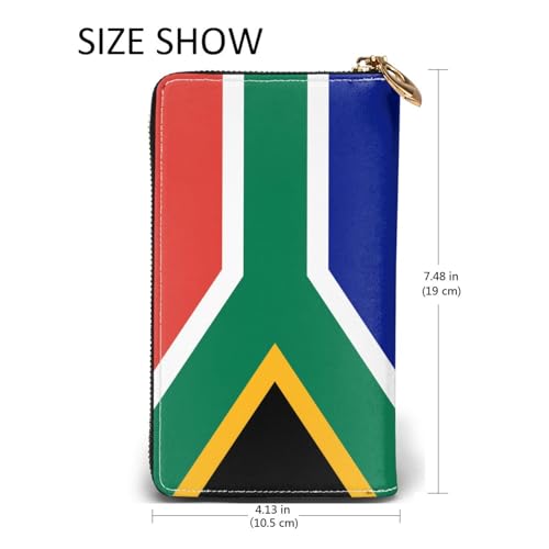 HOT ! Leather Women Wallets, Long Credit Card Holder, South African flag Print Billfold Clutch & Travel Purse Large Capacity