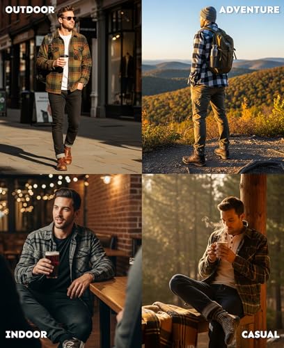 Fabric type: 100% CottonCare instructions: Machine WashOrigin: Made in the USA or Imported100% Cotton Brushed Flannel All Season Jacket ShaketLong Sleeve | Button Wrist Cuffs | 2 Side Hand Pockets | 2 Chest pocketsShirt Jacket - Shaket is suitable for a variety of occasions. It can be worn as a casual outerwear option during cooler weather or as a layering piece. superb for casual daily life, shopping, street wear, working, office, school, holiday, vacation, night out, etc, suitable for autumn, winter and spring. It is a superb choice as a gift for husbands, family members, friends, as the timeless plaid pattern never goes out of style .True to USA Mens Sizing