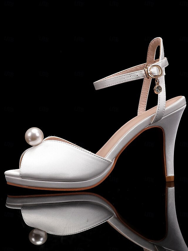 White Heeled Sandals with Pearl Accent – Classy and Chic Footwear for Weddings and Evening Events 8