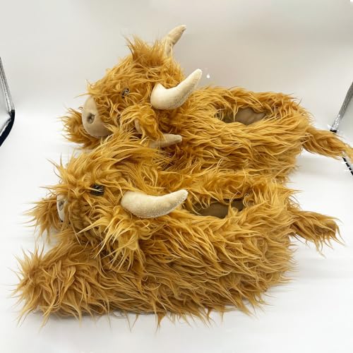 HOT ! Zureto Highland Cow Plush Scottish Cow Slippers, Soft Warm Animal Home Indoor Shoes