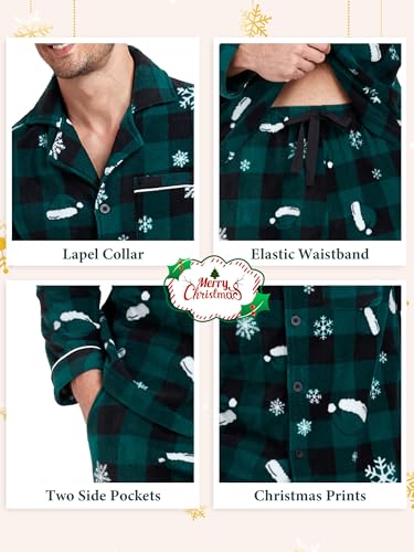 • Christmas Elements Design: This Christmas pajama set for the Couples features a classic Christmas-themed pattern featuring a Santa hat, snowflakes, with classic plaid pants and more, making it perfect for the Christmas holidays.