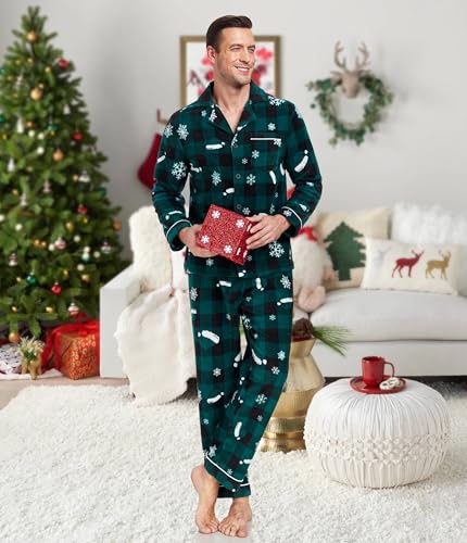 HOT ! COLORFULLEAF Couples Matching Chritsmas Pajamas Sets Fleece Plaid Button Down Pjs Set Soft Warm Loungewear with Pockets