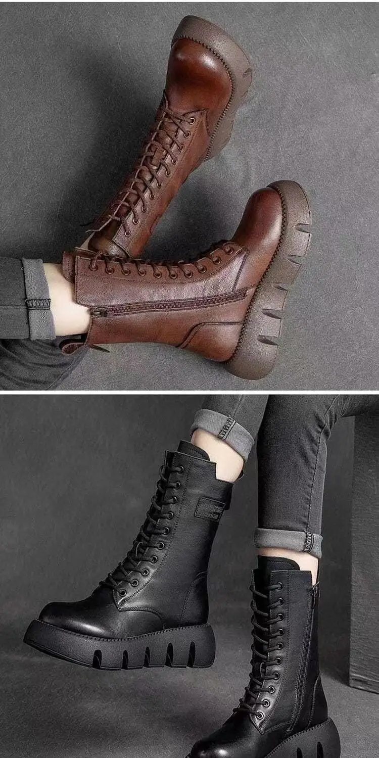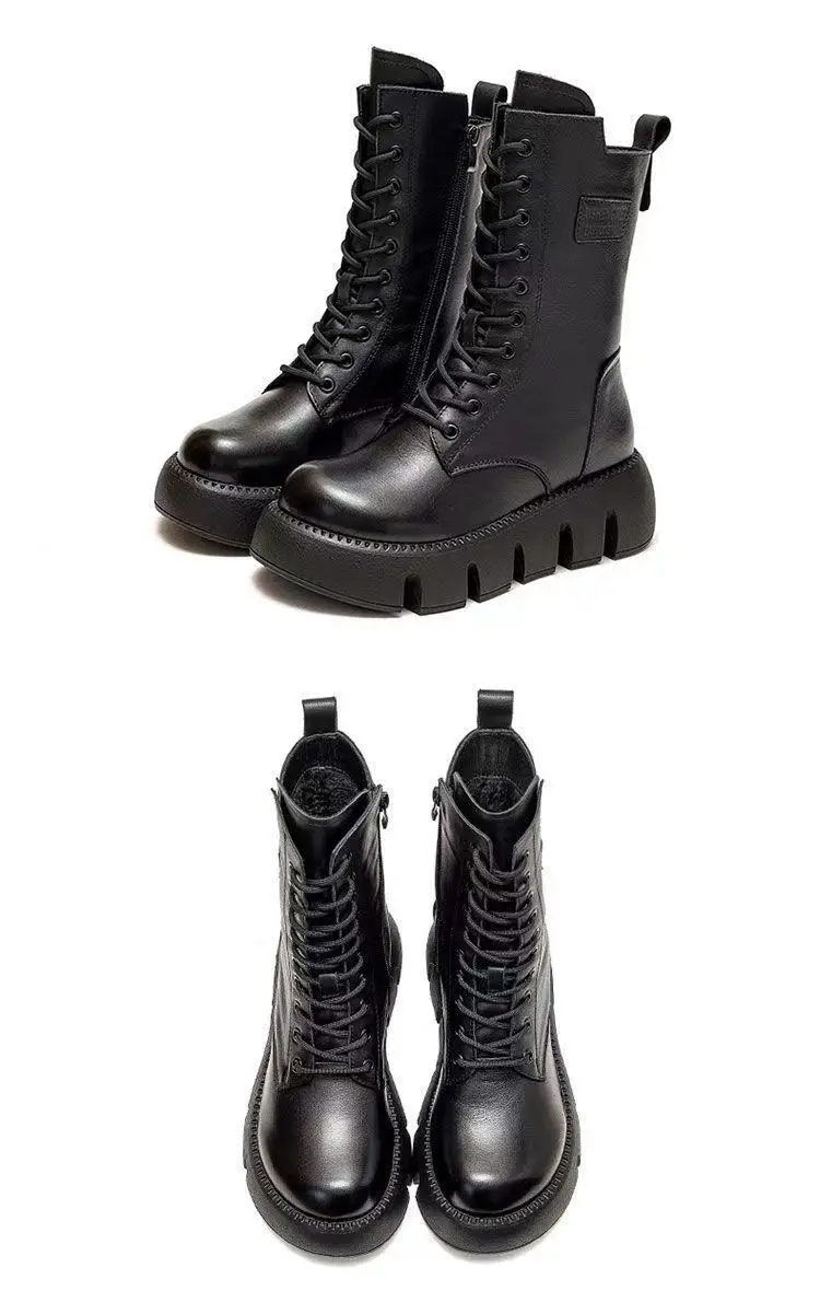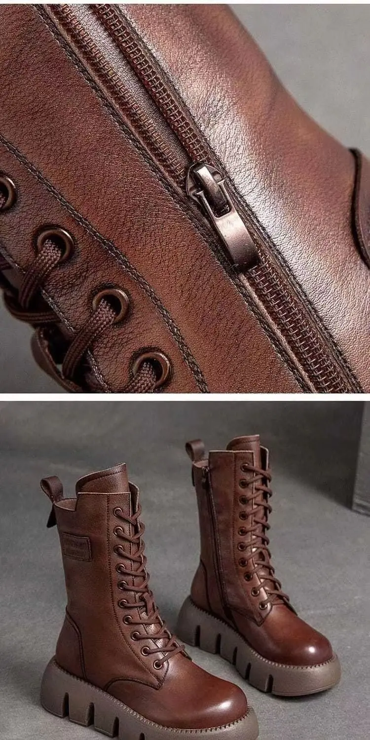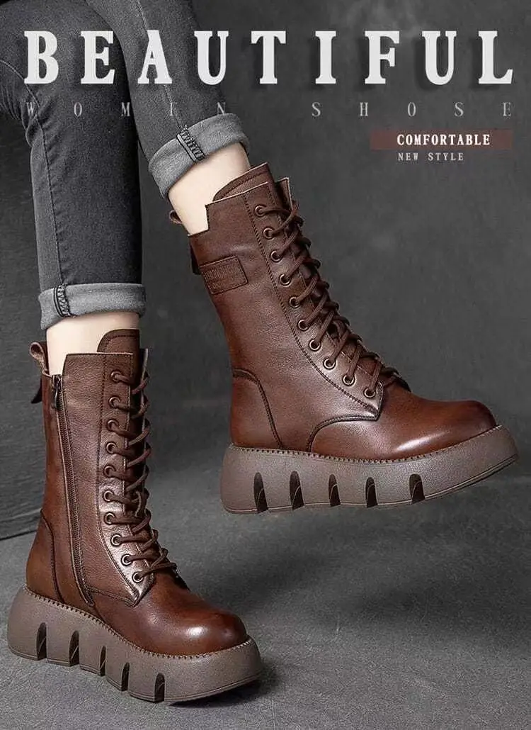 SpecificationsChoice: YesClosure Type: Lace-upHeel Height: Med (3cm-5cm) estimateHeel shape: sponge cake heelInsole Material: PlushSole Material: Rubber (Non-Slip)Season: WinterToe Shape: round toeUpper Material: PUUpper coverage: Above the ankle?With Platforms: Yescolor: Black, Dark Brownhandmade: Yespattern: solid colour??? ???