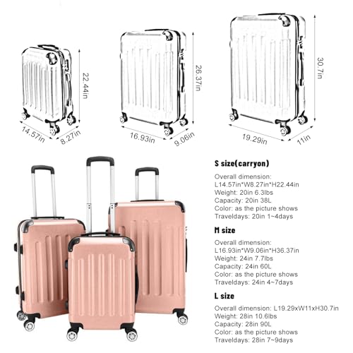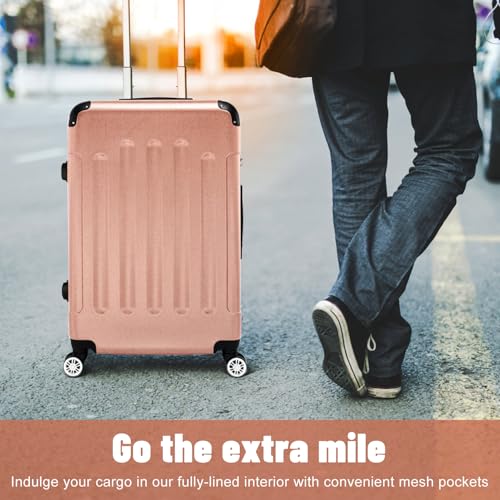 3Piece Set Portable ABS Trolley Case 20" / 24" / 28" Rose Gold, Expandable Luggage with Spinner Wheels, Luggage Sets Travel Trolley Lightweight Suitcase 7