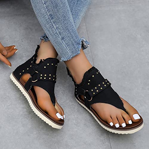 • 【Thong Sandals】: Classic bohemian T-strap style open toe sandals. Zip back thong sandals in a classic fit flat sandal featuring studs on the vamp with buckle accents for cool summer days.