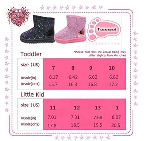 Girls Winter Boots Toddler Girl Boots snug Sparkle Sequin Outdoor Non-Slip Snow Boot for Little kids