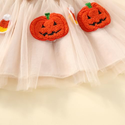 • Adorable & Cozy Halloween Outfit:Fun alphabet, cute ghost and pumpkin pattern sweatshirt, paired with a towel embroidered magic hat/spider/ghost/pumpkin etc embroidery pattern mesh. Fashionable and novel, it's the best Halloween gift for little girls!