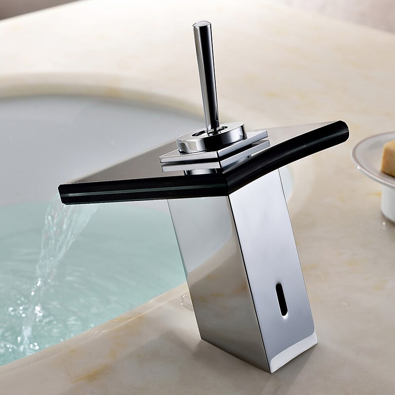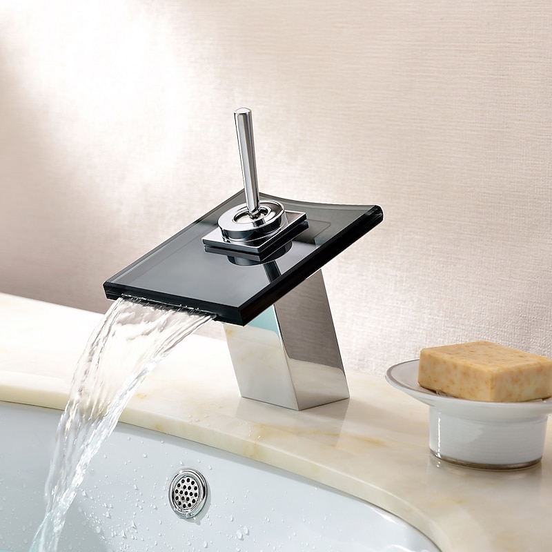 Bathroom SInk Faucet,Glass Outlet Faucet Waterfall Bathroom Faucet with Hose Single Handle Single Hole Sink Sink Faucet Ceramic Valve 1