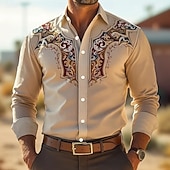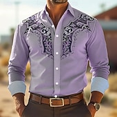More information about Men's Scroll Floral Print Ethnic Shirt Western Shirt Cowboy Shirt Long Sleeve Vintage Retro Outdoor Vacation Spring Fall Turndown 3D Print Linen Like Shirt Light Khaki Pink Blue Purple