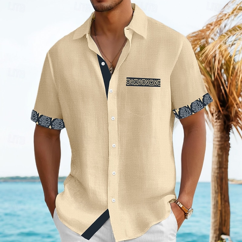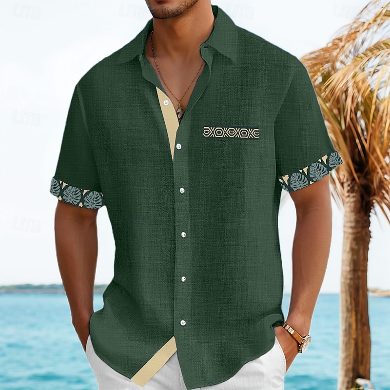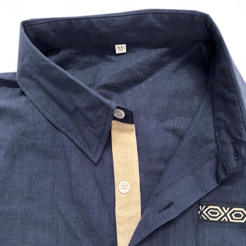 More information about Men's Shirt Linen Shirt Summer Shirt Beach Shirt Plaid Vacation Holiday Black Navy Blue Green Khaki Short Sleeve Collar Summer Clothing Apparel