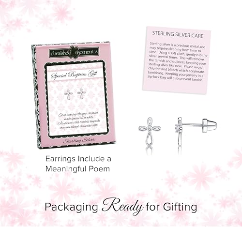 Cherished Moments Sterling Silver or 14K Gold Plated Baptism Gift Earrings for Babies, Toddlers, and Little Girls (Screw Back) 1
