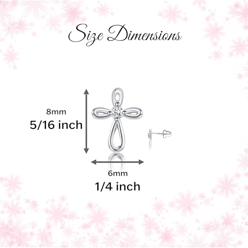 • PREMIUM QUALITY – Baptism earrings are designed with .925 sterling silver and feature beautiful infinity crosses accented with a sparkling CZ stone. These are hypoallergenic and nickel free so they won't irritate sensitive ears. (Earrings measure 7x10mm)