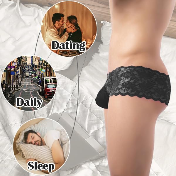 Mens Sissy Lace Thongs Transparent Panties G-Strings Briefs Jockstraps Underwear Underpants for Men 5