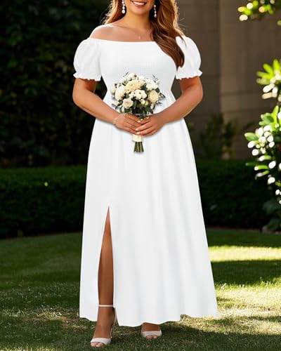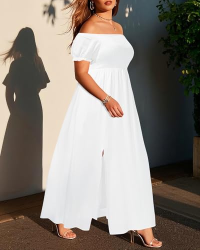 More information about Plus Size Summer Dresses - Boho Casual Off Shoulder Floral Long Maxi Dress with Pockets