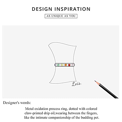 • ❤ THE IDEA OF DESIGN: Metal oxidation process ring, dotted with colored claw-printed drip oil,wearing between the fingers, like the intimate companionship of the budding pet.