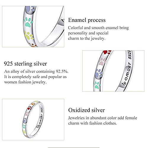 BISAER 3mm 3.4mm Paw Print Ring S925 Sterling Silver Ring Puppy Dog Cat Paw Ring, Multicolor Pet Print Enamel Ring for Women Size 5-10 4