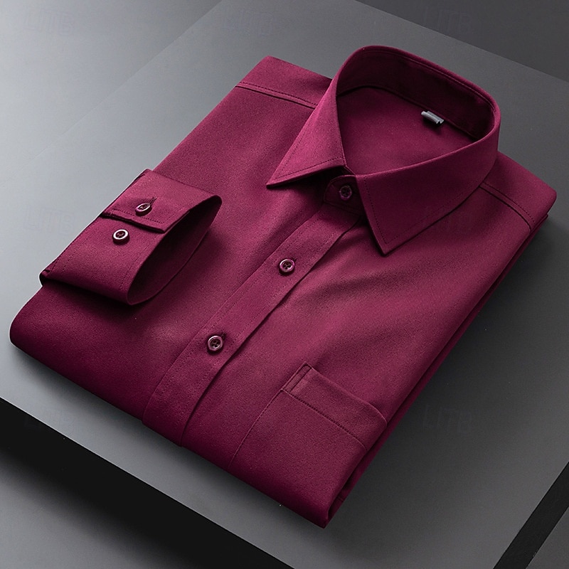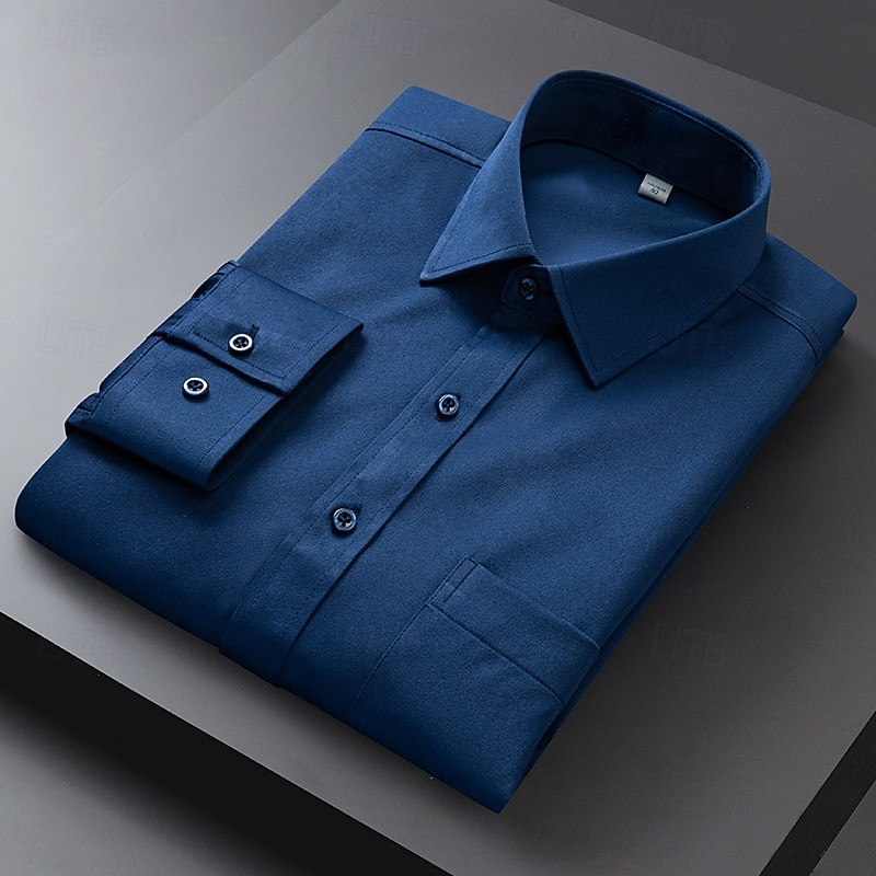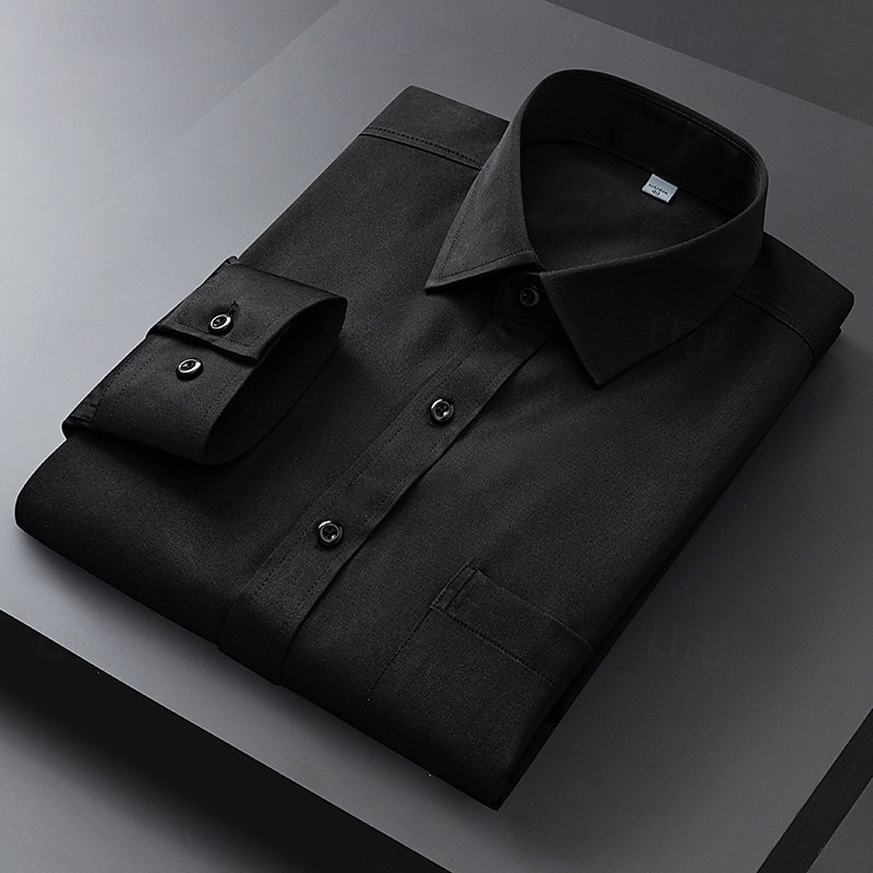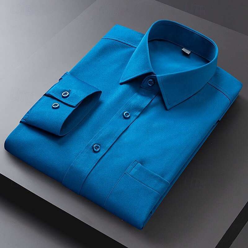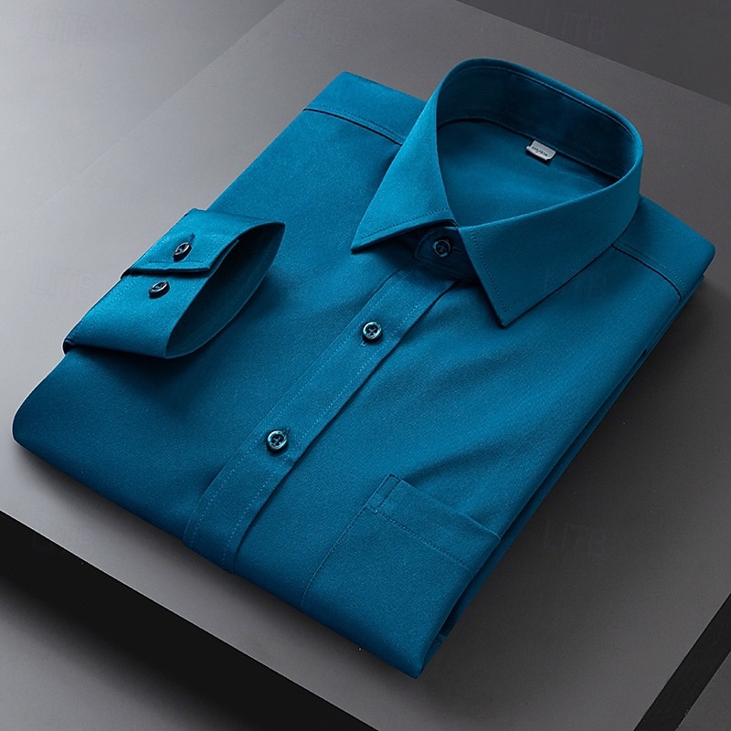 Men's Dress Shirt Non Iron Shirt Plain Wedding Outdoor Light Blue Black White Light Green Long Sleeve Turndown Summer Spring Clothing Apparel 17