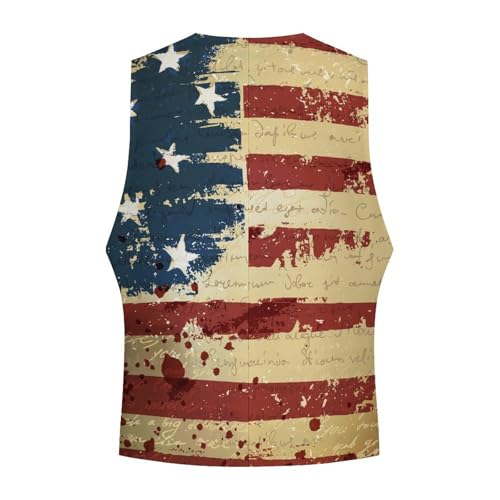 Grunge America Flag Men's Suit Vest Slim Fit V-Ncek Waistcoat Business Casual Vest 4
