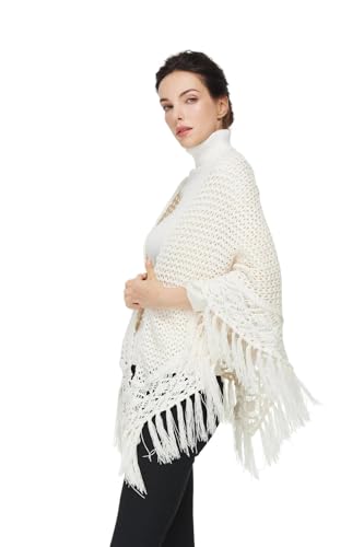 Women Versatile Knit Shawls and Wraps for Evening Dresses Elegant Triangle Fringed Scarf Cover Up
