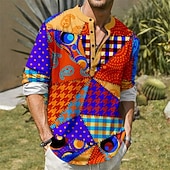 Highlights [Fabric] : Crafted from breathable slub fabric, this long-sleeve shirt offers a lightweight feel, making it perfect for spring and fall. The material's micro-elasticity ensures comfort and ease of movement, ideal for daily wear or vacation outings. [Fit] : The shirt presents a regular fit, providing a relaxed yet tailored silhouette. Its easy-going style allows for versatility, making it a wardrobe staple. [Design Highlights] : Featuring a standout patchwork pattern with paisley, houndstooth, and polka dots in vibrant blue, orange, yellow, and red hues. The shirt includes a modern mandarin collar and a buttoned v-neck placket, enhancing its fashionable look. The understated cuffs keep the focus on the shirt's bold design. [Occasions] : This versatile shirt is ideal for various occasions, whether it's a casual day out, a holiday getaway, or a stylish addition to your vacation wardrobe. Its tribal aesthetic and rich color palette make it a great choice to add personality to your outfit. [Sizing] : Available in a range of sizes from S to 3XL, ensuring a comfortable and well-fitted option for adults of all sizes.