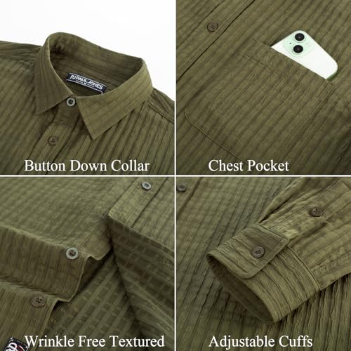 PJ PAUL JONES Men's Casual Button Down Shirts Long Sleeve Textured Wrinkle Free Untucked Shirt with Pocket 5
