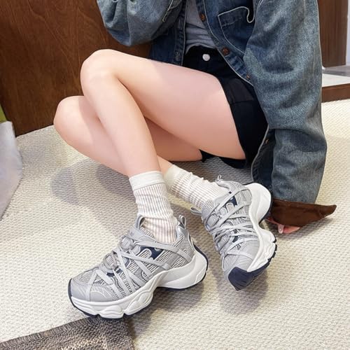 Fashion Breathable Mesh Lace Up Chunky Platform Sneakers for Women Casual Round Toe Non-Slip Running Walking Tennis Driving Dad Shoes 7