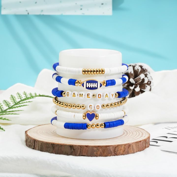 Material: ClayMetal type: ZincGem type: No gemstone【Versatile Game Day Bracelets】Get ready to cheer in style with our Game Day Bracelets for Women. The ultimate accessory for any sports enthusiast! This game day bracelets bulk offers a colorful array of red, blue, and brown options, matching any team’s colors and completing your game day look with flair.【Football Bracelets Bulk】Handcrafted with care, each football bracelet blends traditional clay heishi beads with modern materials, message ‘GAME DAY’ and football charms, helmet charms and jersey charms strung on elastic bands. Creating a exclusive surfer bracelets set football accessories that embodies both athletic energy and casual chic.These Game day beaded bracelets with premium elasticated bands which is stretchable for easy adjust to fit different wrists.length:about 7.0 inch.【Stackable Football Bracelets Set】Show your team spirit on game day with these Game day beaded stretch bracelets. You can bet your bottom dollar these fun football bracelets will help you stay grounded for the whole game! Make a statement and celebrate your team's kickoff in style with our football mom accessories.Pair with team uniform, tank top, T-shirt, or any other Game day outfit, to show your team spirit!【Game Day Outfits Accessories】Which team will you be rooting for? Get ready to stand out at tailgating events and football parties with our red black blue heishi bracelet. These team spirit accessories perfect for support your favorite football team, go to tailgate party, sports meeting, cheer leading, club, football match, game day to show your love for your favorite sport. These statement sport jewelry will bring all the good vibes, and you'll be sure to catch everyone's eye!【Football Jewelry Gifts】With a generous football team bracelets, you can share the love and team spirit by gifting them to friends, family, or fellow fans. Perfect for football season, birthdays, or as a thoughtful surprise for your sports squad. Perfect for everyday use. excellent materials and excellent craftsmanship ensure long-lasting durability.