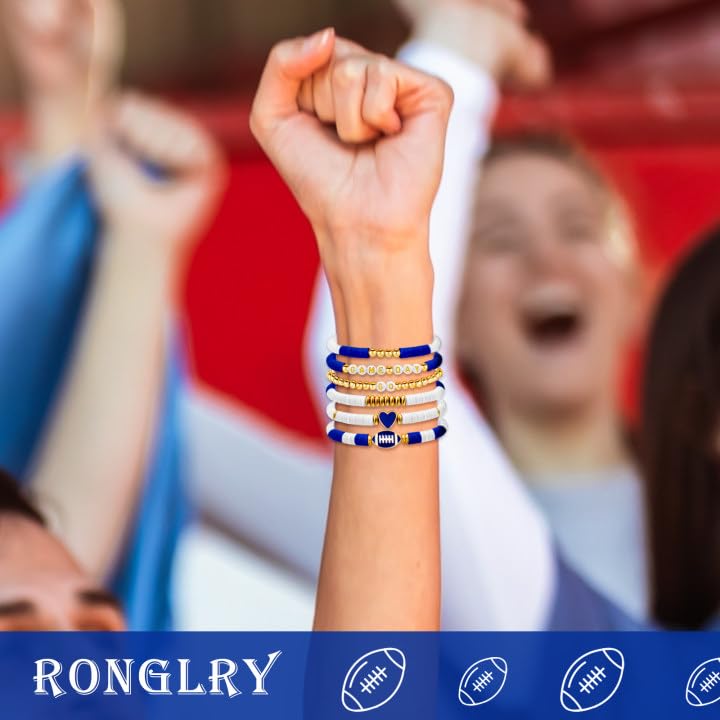 Football Bracelets for Women Game Day Bracelets for Women Beaded Sports Bracelets Clay Heishi Stackable Stretch Bracelets Set Game Day Outfits Accessories Football Bracelets Bulk Football Jewelry