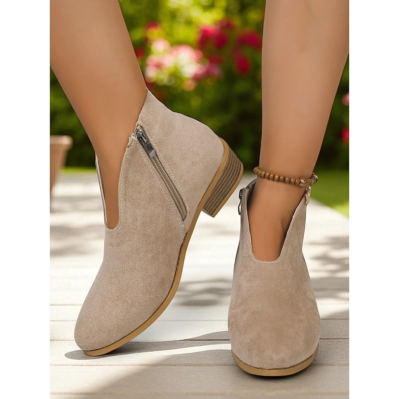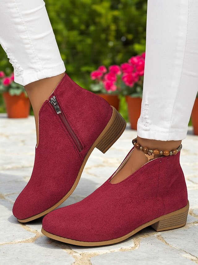 Women's Red Faux Suede Ankle Boots with Side Zipper – Casual & Elegant Style for Garden Parties, Park Walks and Daily Wear 19