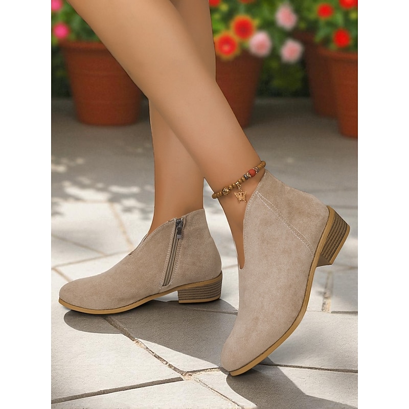 Women's Red Faux Suede Ankle Boots with Side Zipper – Casual & Elegant Style for Garden Parties, Park Walks and Daily Wear 20