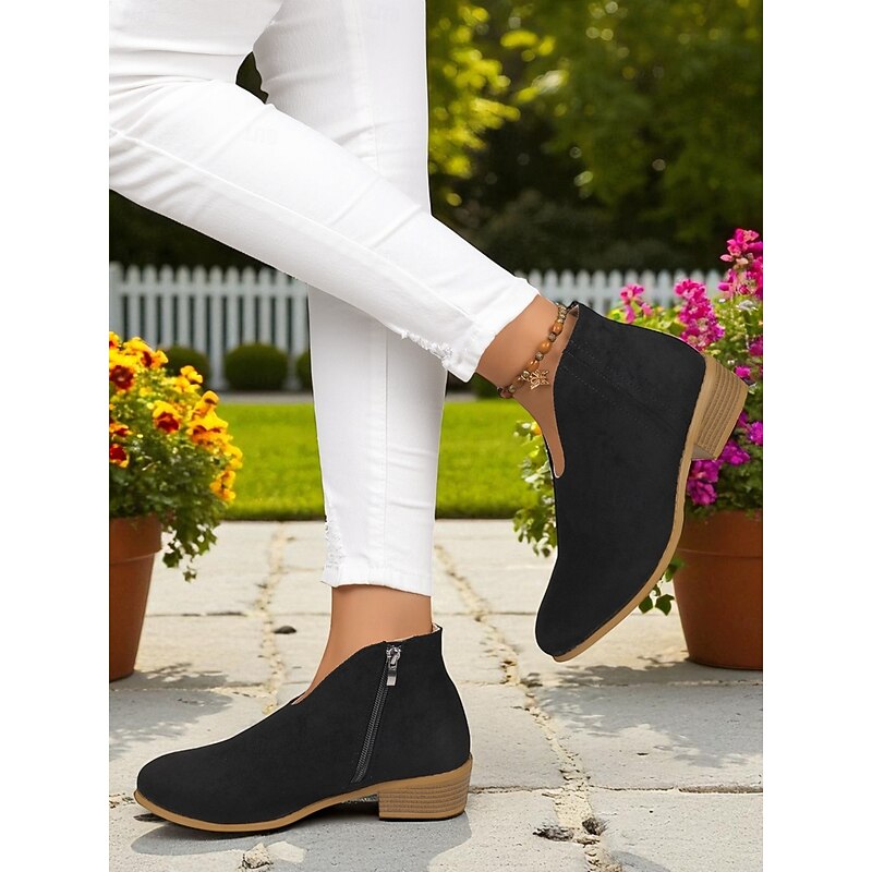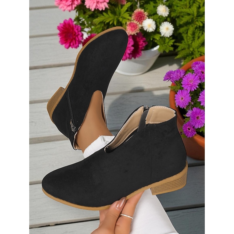 Women's Red Faux Suede Ankle Boots with Side Zipper – Casual & Elegant Style for Garden Parties, Park Walks and Daily Wear 10